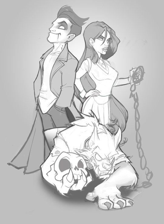 Once the UX is done I start the creative part. I do some research until I get a rough idea of what I want to create… a word, a picture, a video and that’s it! the concept gets clearer: some vampire characters on an illustrated background appropriate to the webpage’s topic and attractive for the target audience.