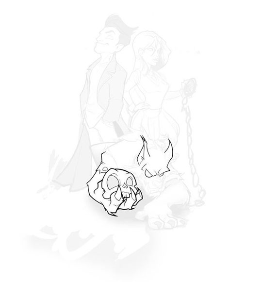 In this step I practically use everything I have on my fingertips to compose the illustration: Photos, sketches I have done before or with my drawing tablet. When I am satisfied with the concept, I retouch it till I come up to a sketch I can work with. If you want to get better at character drawing, I suggest this drawing exercises for beginners