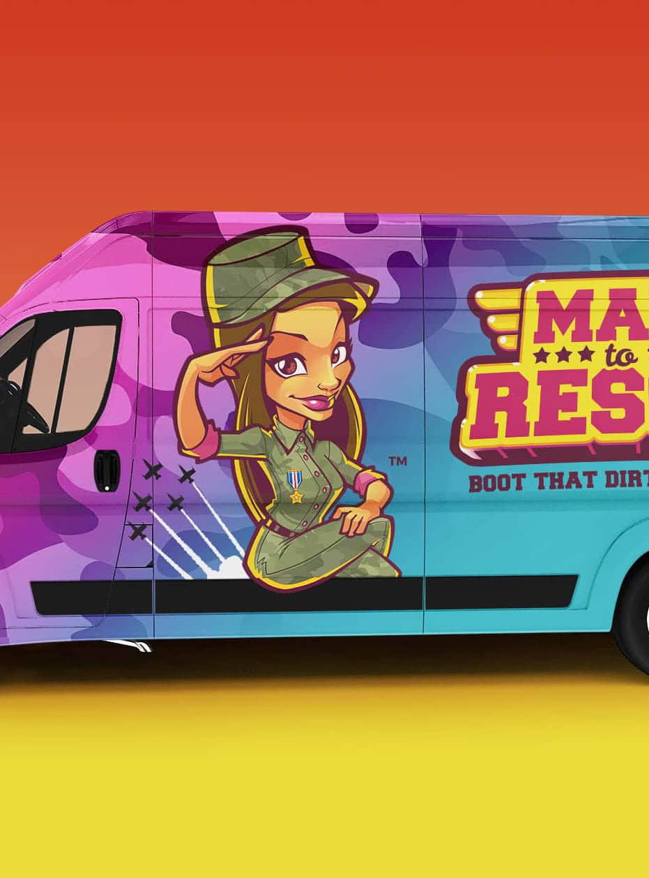 Maids to the Rescue es una pequeña compañía que ofrece servicios de limpieza para recintos residenciales. Mia, la propietaria, ya tenía un logotipo y mascota publicitaria pero no era profesional: no era escalable, era demasiado compleja y poco atractiva… por lo que me contrató para rediseñar su identidad corporativa. Desarrollé una imagen corporativa profesional pero fresca y divertida, flexible para ser impresa en tamaños reducidos o para imprimir cartelería a grandes formatos.
