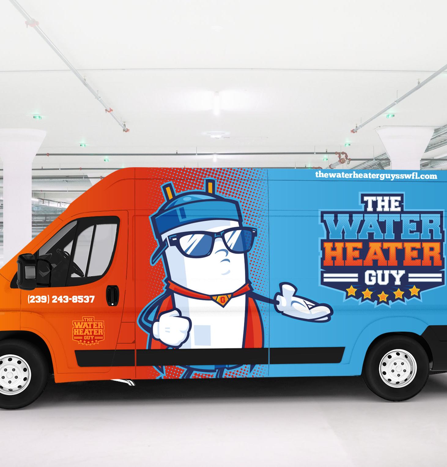 The Water Heater Guy is a trusted plumbing company in South West Florida (Lee, Collier, Charlotte & Sarasota Counties) that offers superior and reliable repairment service. Miguel hired me to redesign his old mascot illustration and cartoon logo. I used their old mascot as reference improving the graphic quality while I completely redesigned their logo.